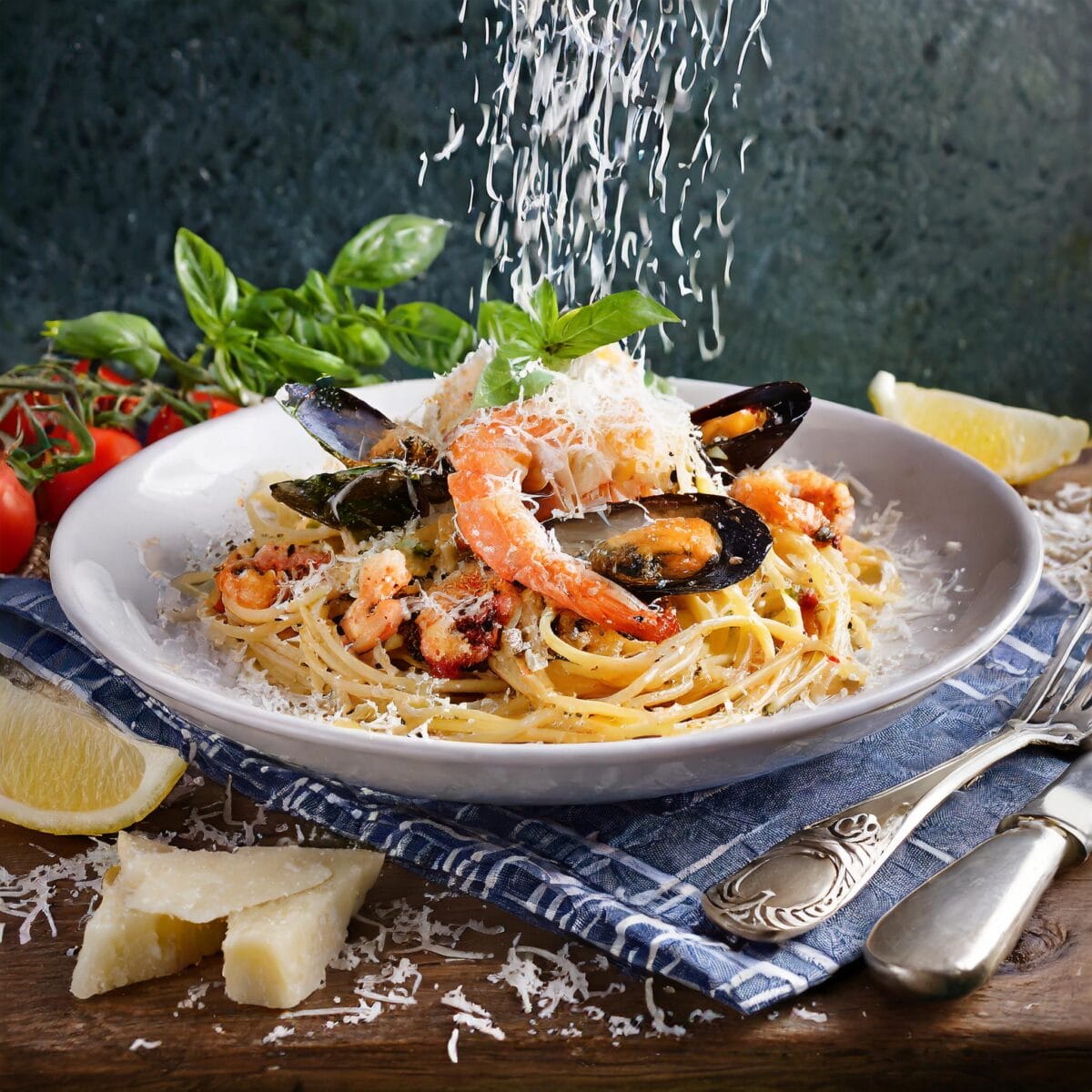 Un altro crimine contro la cucina italiana è grattugiare il formaggio sulla pasta con il pesce, sugli spaghetti alle vongole, sulla pasta ai frutti di mare, etc. In generale, condire un primo di pesce con il formaggio è un grave passo falso per noi italiani.