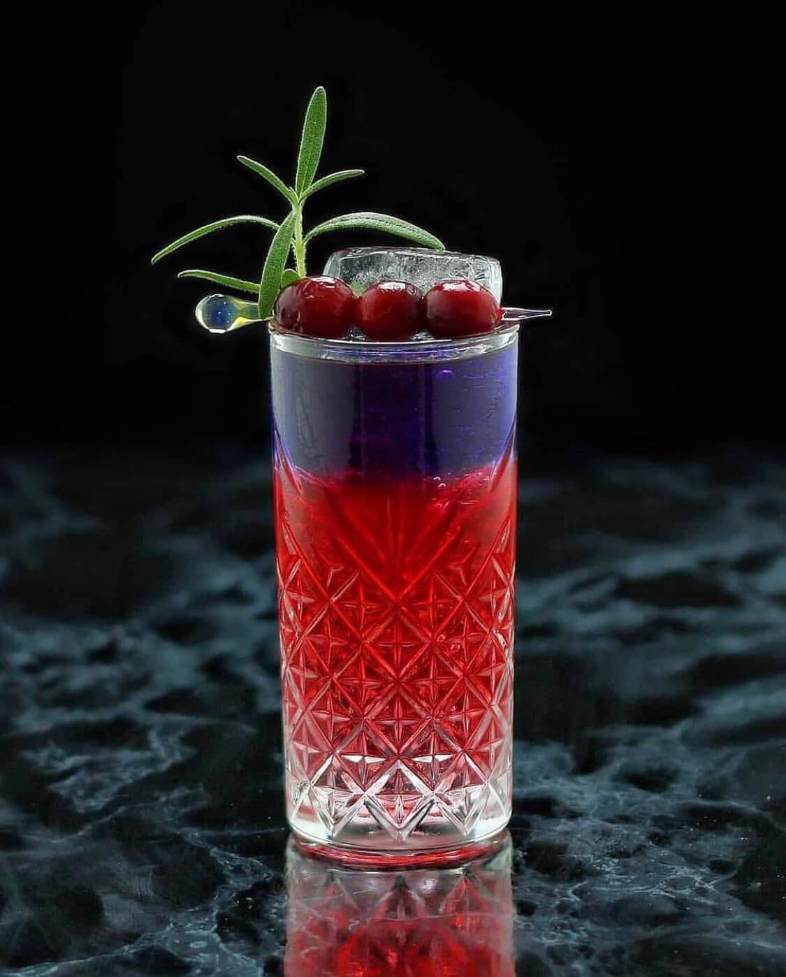 Aggiungi il Vermut bianco, la miscela aromatica e i mirtilli in uno shaker e agitata. Versa il tutto in un bicchiere freddo con ghiaccio chiaro. Aggiungi la tonica e il gin. Guarnisci con rosmarino e mirtilli poggiati sul bordo del bicchiere. Infine mescola delicatamente prima di servire.