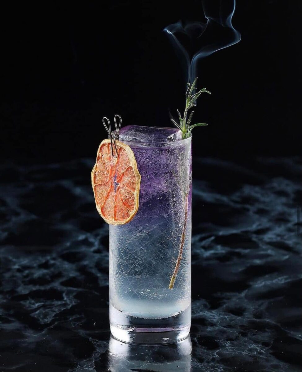 - Guarnizione: pompelmo disidratato e un rametto di rosmarino