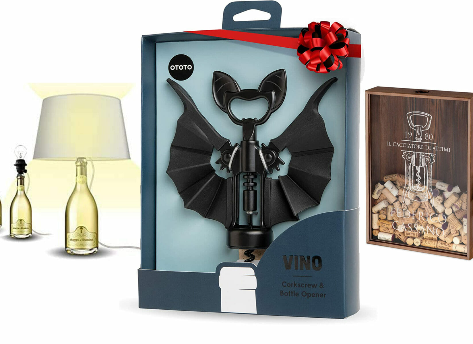 Si chiama Ototo ed è un cavatappi a forma di pipistrello, è un accessorio spettacolare, con denti affilati, divertente e originale, per aprire bottiglie di bino o di birra. Una magia per stupire gli ospiti. È realizzato in silicone e metallo. Lo si può comprare a 20,99 euro.