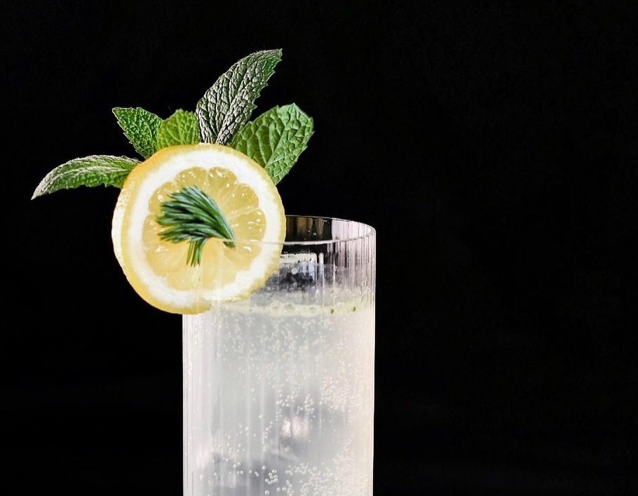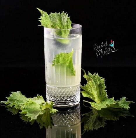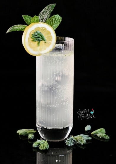 Pestare delicatamente nello shaker le foglie di menta e lo sciroppo di spruce tip, aggiungere gli altri ingredienti (tranne l’acqua tonica) e il ghiaccio, quindi shakerare e filtrare nel bicchiere pieno di ghiaccio e completare con un top di acqua tonica.