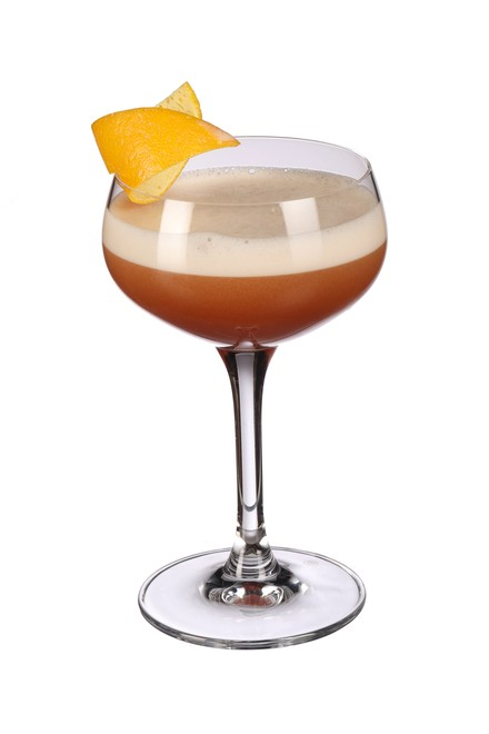 Preparazione: mescolare gli ingredienti tranne il limone nel mixing glass, filtrare nella coppetta ghiacciata e strizzarvi sopra la scorza di limone per estrarne gli oli essenziali.
