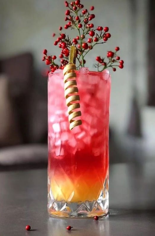 Un tramonto speziato, un cocktail con mirtillo rosso, vaniglia, ananas e rum speziato: è la ricetta di Brookbartending