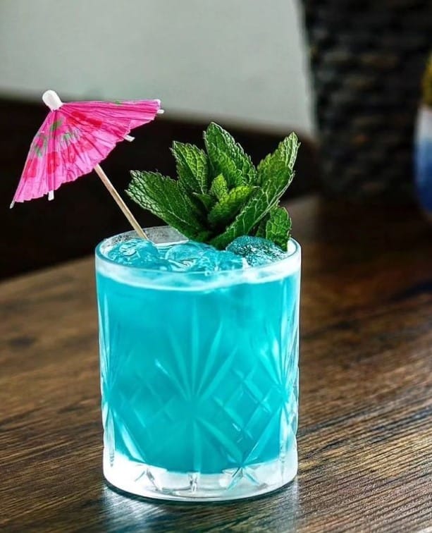 Un cocktail che colpisce al primo colpo, blu brillante grazie al Curacao, realizzato da