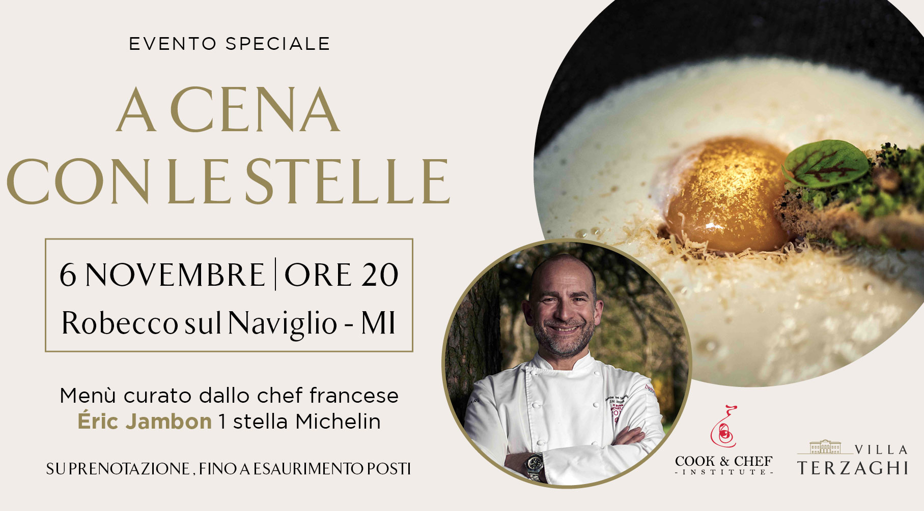 La prima serata avrà come protagonista d’eccezione lo Chef francese stellato Éric Jambon che proporrà una Cena Stellata realizzata in collaborazione con il resident chef di Villa Terzaghi Federico Urbani e gli studenti della scuola.