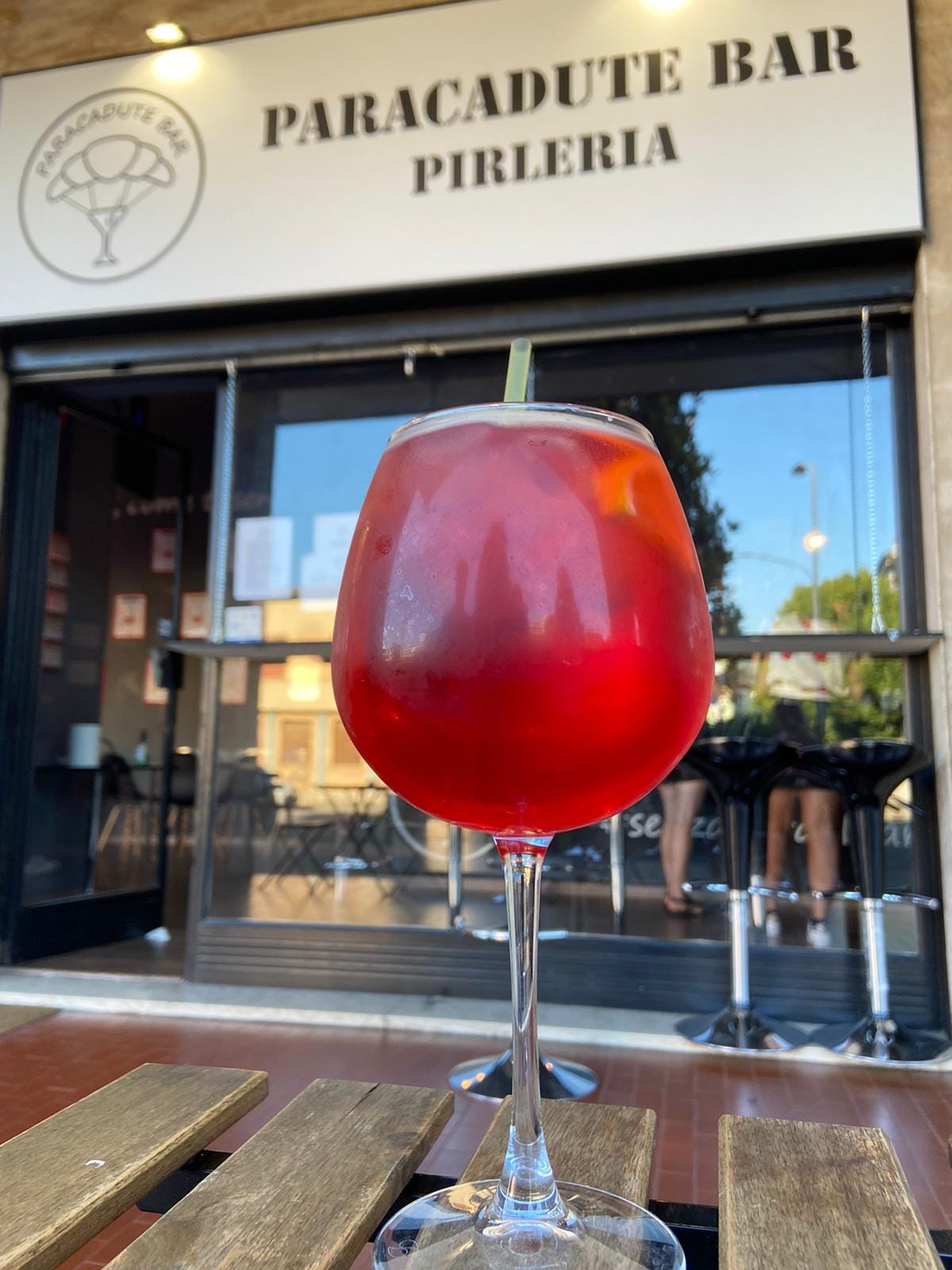 Aperitivo abbondante, con ottimi prezzi, il Paracadute Bar è la casa del Pirlone, la versione maxi del Pirlo, da 0,7 cl.