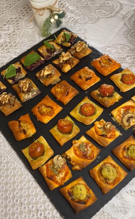 ecco tante idee di tartine (canapè) antipasti da realizzare con la pasta sfoglia: