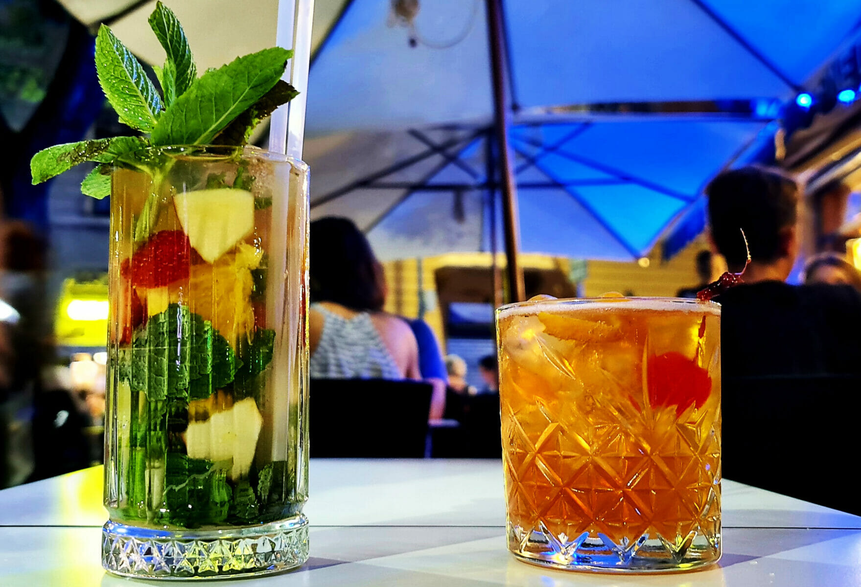 Ecco quindi da Bartender un aperitivo con buffet dove -se vuoi- puoi cenare. Sul banco (che flashback agli Anni ’90!) c’è di tutto: dall’antipasto al dolce (la consumazione minima è 12 euro, il cocktail costa 13 euro durante la fase di Happy Hour che si conclude alle 22.30). I drink sono serviti in bicchieri resistenti, con tanto ghiaccio e decorazioni -quando possibile- vistose. Prendiamo il Jamaica Julep (nella foto di apertura, a sinistra): un tripudio di menta e frutta con il rum a fare da sfondo. Beverino, estivo, low alcol.