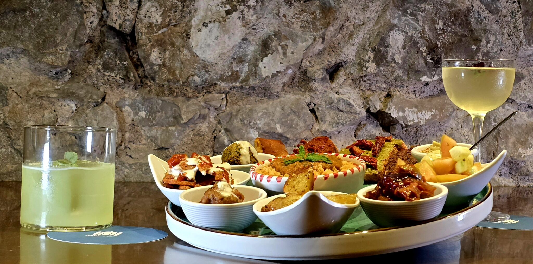 Il Primo Sorso (tè alla menta, cordiale al dattero, gin Tanqueray 0.0%) è un cocktail senz’alcool che si rifà all’Iftar, rituale musulmano che, al tramonto, segna la fine del digiuno quotidiano durante il Ramadan, con acqua e datteri. Alla Grecia e al Panigiri di Tinos, festa in onore della Madonna di Tinos, è ispirato invece l’Aegan Cocktail (mastiha Roots, genziana, Noilly Prat, salamoia e cappero), mentre il Gipsy Spice (metaxa, liquore al miele, limone, cordaile al pepe, zenzero) celebra l’Ederlezi, tipica festività di primavera dei rom dei Balcani.