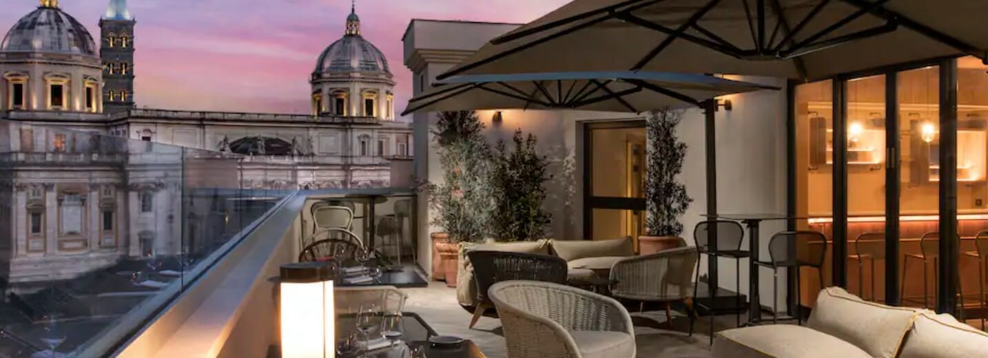 Cocktail bar sul tetto del DoubleTree By Hilton Rome Monti, arredato in stile moderno e impreziosito ovviamente da una vista mozzafiato sulla città eterna. Propone una buona selezione di vini, birre e ricercati cocktail signature ispirati alla tradizione della mixology italiana, accompagnati da tapas gourmet per un aperitivo o una cena leggera.