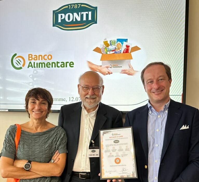 “Avere la possibilità di collaborare attivamente con una realtà consolidata e affermata come il Banco Alimentare è motivo di grande orgoglio per noi di Ponti. Essere parte del network di We Save and Care ci dà la certezza che il nostro contributo produrrà un impatto positivo per tante persone bisognose di supporto. L’attestato che oggi riceviamo dal Presidente Giovanni Bruno ci stimola a continuare con convinzione sulla strada che abbiamo intrapreso già da diversi anni, che vede il gruppo Ponti impegnato a sostegno di una causa collettiva che ci sta molto a cuore quale quella del sostegno alle famiglie e alle persone vulnerabili e della lotta allo spreco alimentare” hanno dichiarato Lara Ponti e Giacomo Ponti, CEO dell’azienda.