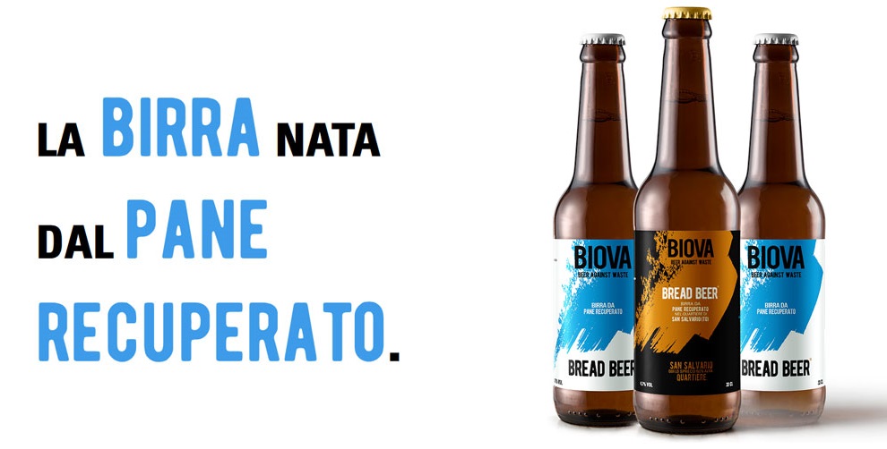 Il birrificio Biova (nome che indica anche un tipico pane piemontese), nato nel 2019, ha presentato una linea di prodotti che ha impresse sulle etichette delle frasi che spiegano bene quale sia lo spirito che anima l’iniziativa: ‘contro lo spreco possiamo recuperare’, ‘noi lo spreco ce lo beviamo’, ‘contro lo spreco’ e così via, evidenziando in tutte l’etichette la dicitura ‘birra da pane recuperato’.