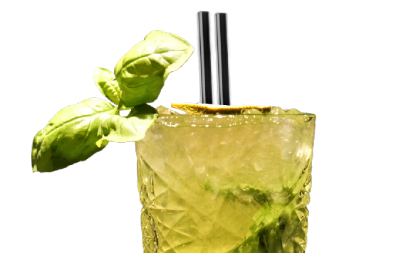 Mettete lime, zucchero e foglie di basilico nel bicchiere.