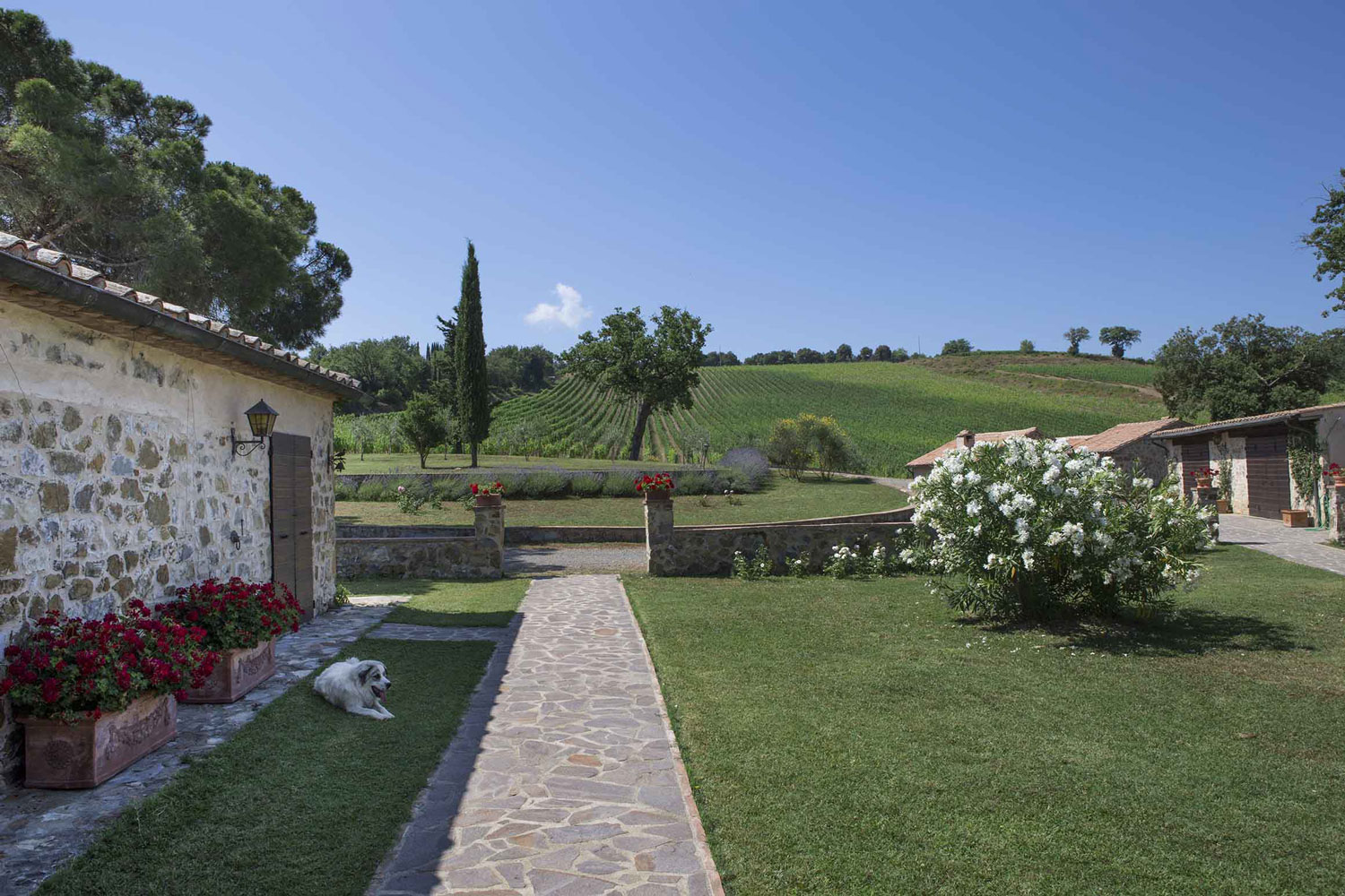 Su 53 ettari, di cui 10 vitati, si trovano antichi casali in pietra, querce secolari, una pieve medievale e un pozzo storico. Qui la cantina di vinificazione e affinamento convive con una sala degustazione nella casa padronale e con spazi dedicati a verticali ed esperienze di pairing.