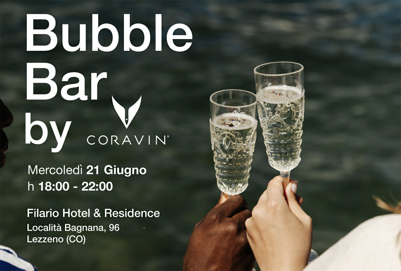 L’estate di Filario Hotel & Residences, sul Lago di Como, si preannuncia più frizzante che mai con il Bubble Bar By Coravin.