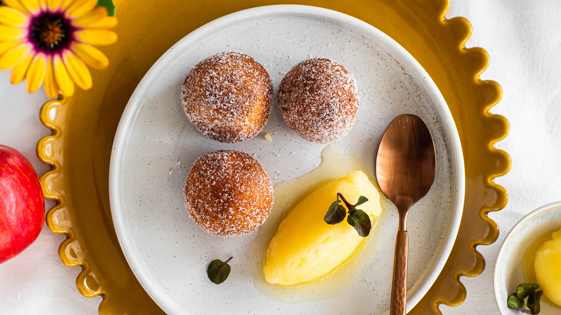 L’impasto, a base di latte, semola, uova e ricotta, viene sapientemente lavorato per creare palline che, una volta fritte, assumono una doratura perfetta e irresistibile. Ogni boccone offre una combinazione di croccantezza e morbidezza che si arricchisce con una spolverata di zucchero e l’accompagnamento del sorbetto di mele Topaz. È un dessert che celebra l’autenticità dei sapori tradizionali con un tocco di modernità.