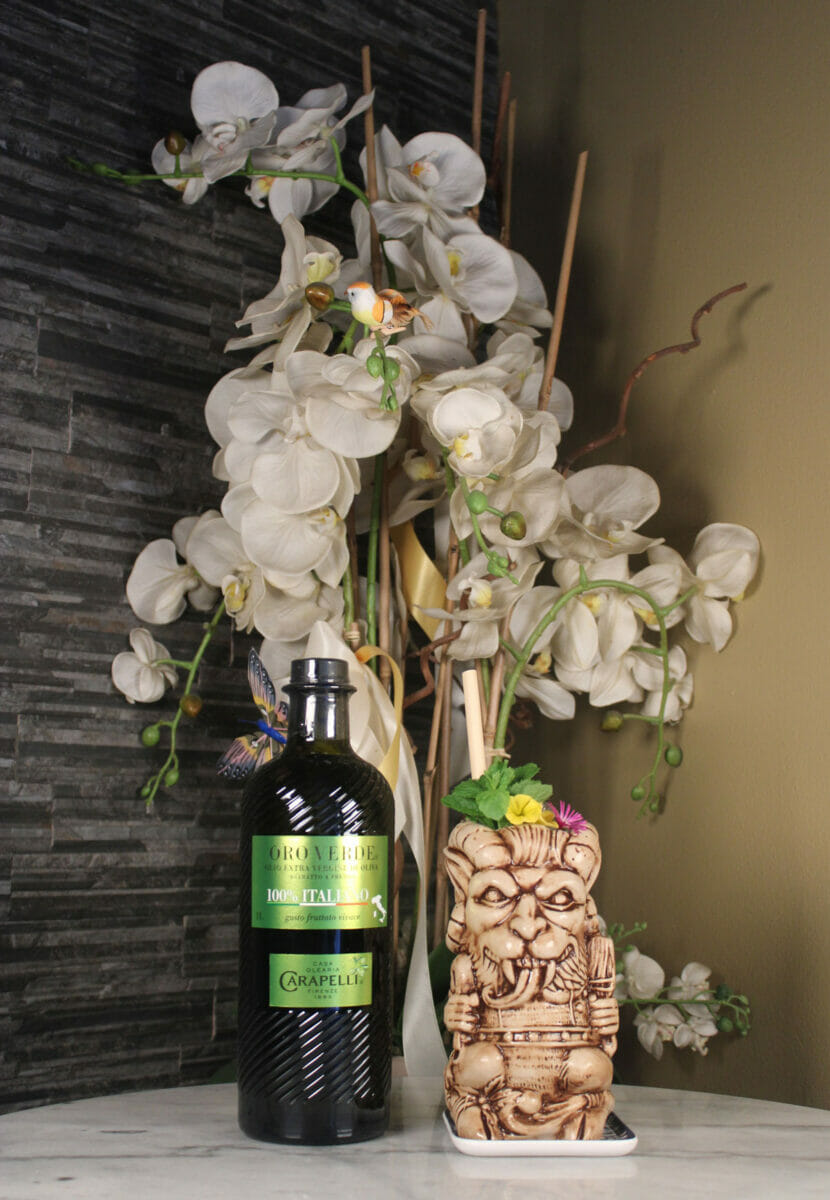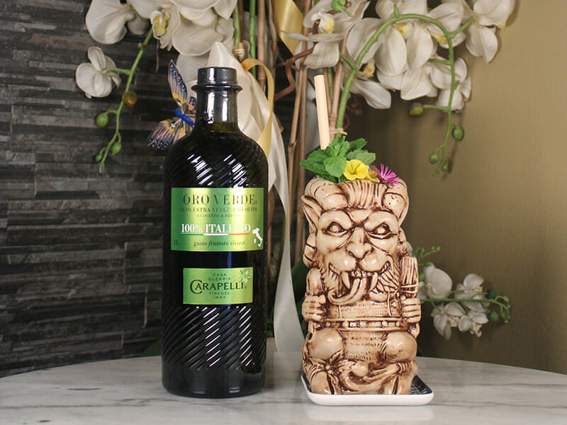 Oggi ci cimentiamo con la preparazione di un Tiki Cocktail inserendo, come ingrediente rilevante, uno dei prodotti Premium dell’azienda Carapelli Firenze, l’olio di oliva “Oro Verde 100% italiano”.