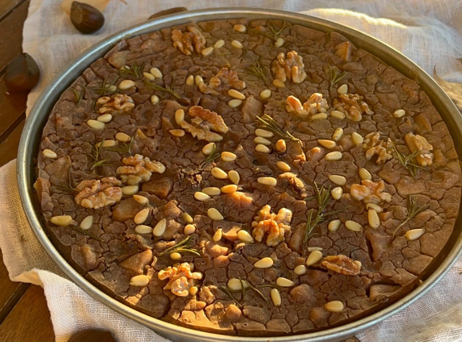 Il castagnaccio è un dolce tipico toscano a base di farina di castagne che si prepara tradizionalmente in questo periodo dell’anno.