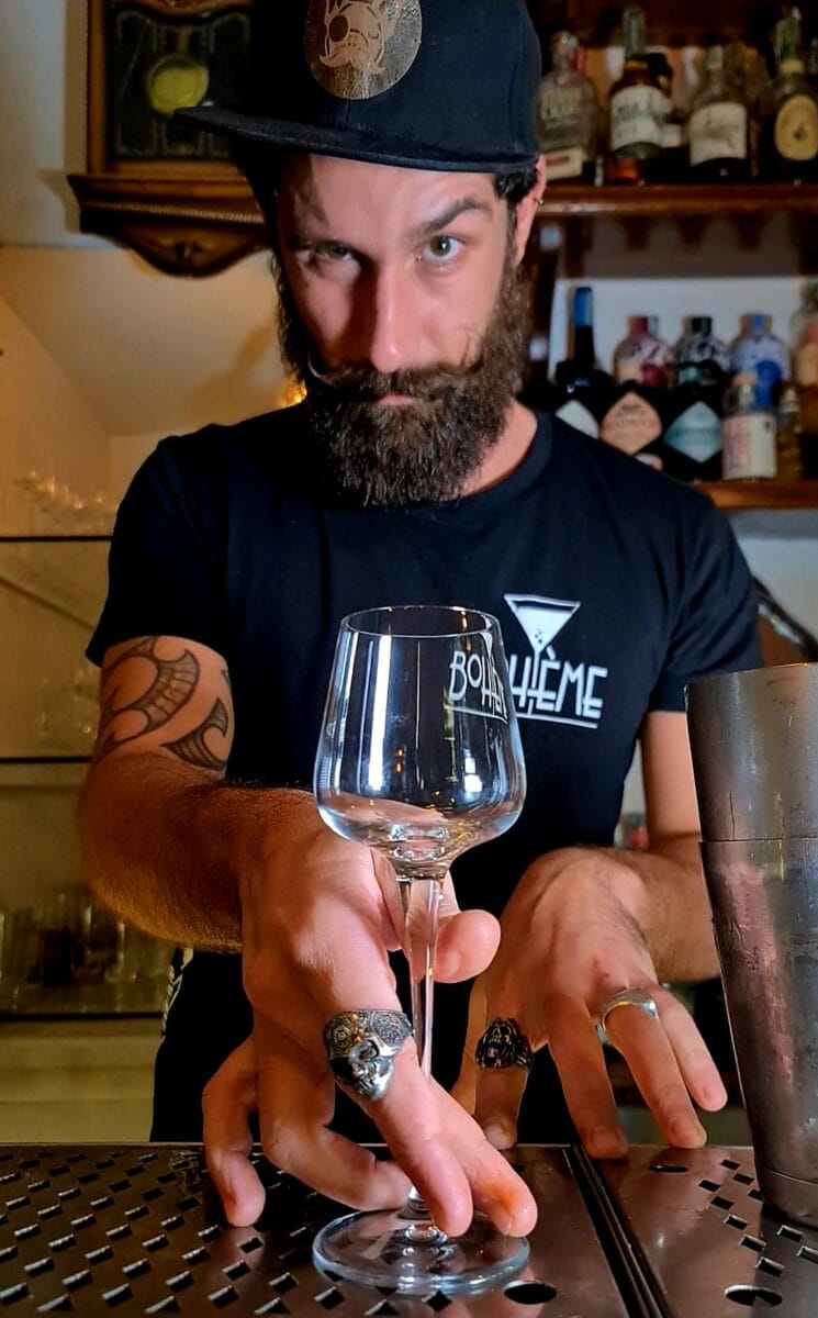 “Sin dall’inizio abbiamo voluto condividere la ‘cocktail experience’ con i nostri clienti”, spiega ad ApeTime Salvatore Longo, contitolare del Bohème Mixology Bar. “Questo non significa che imponiamo il drink che abbiamo stabilito essere il più adatto al profilo di ognuno, ma che ci impegnamo a fondo nel capire le esigenze di ogni cliente e nello studiare il drink che sappia soddisfarle. Comunicandogli dal primo momento che i prezzi vanno dagli 8 euro degli analcolici ai 12 euro della maggior parte dei cocktail fatti con i nostri cordiali e prodotti di laboratorio (distillati, liquori, aromi essenziali…). Certo, questa impostazione comporta un grande sforzo da parte nostra, però dopo quasi otto anni abbiamo raccolto una serie di feedback che ci facilita nel lavoro”.