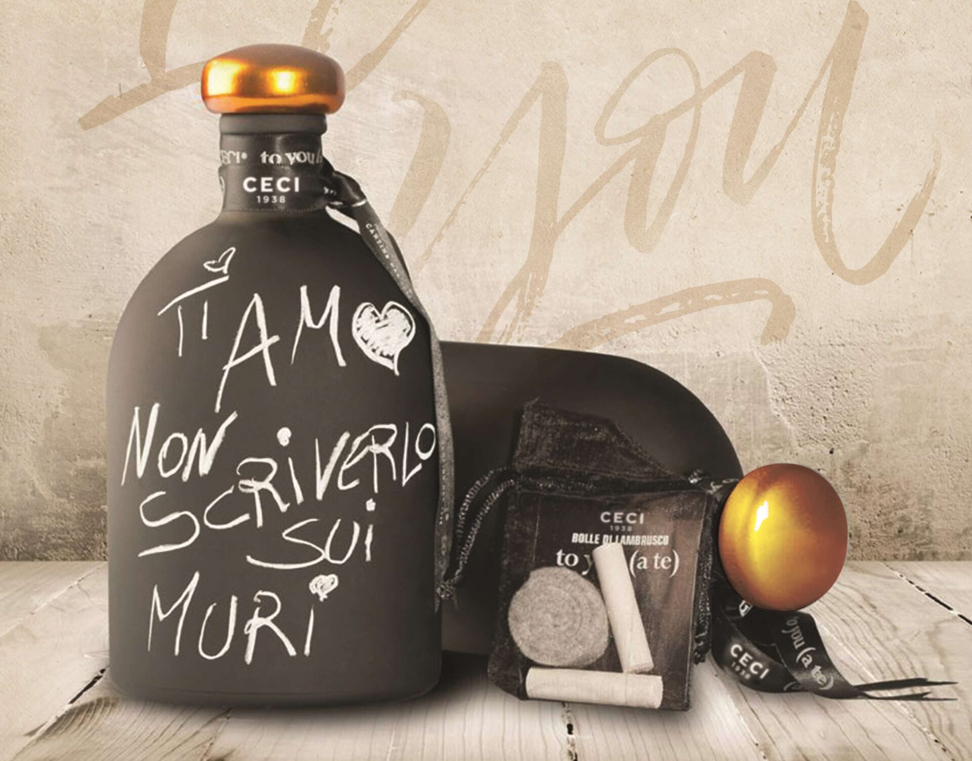 Le cantine CECI 1938 danno forma ai pensieri proponendo il Lambrusco più iconico della winery in una bottiglia dal concept unico. Con un pizzico di follia prende vita TO YOU, un vino semplice ed elegante, una bottiglia che si fa portavoce di messaggi da indirizzare “a te”, alla persona che ami, che stimi, a cui pensi. All’amica, all’amata…alla mamma! Per accompagnare il regalo di un vino con un pensiero che sia solo tuo, e che rende unica ogni bottiglia.