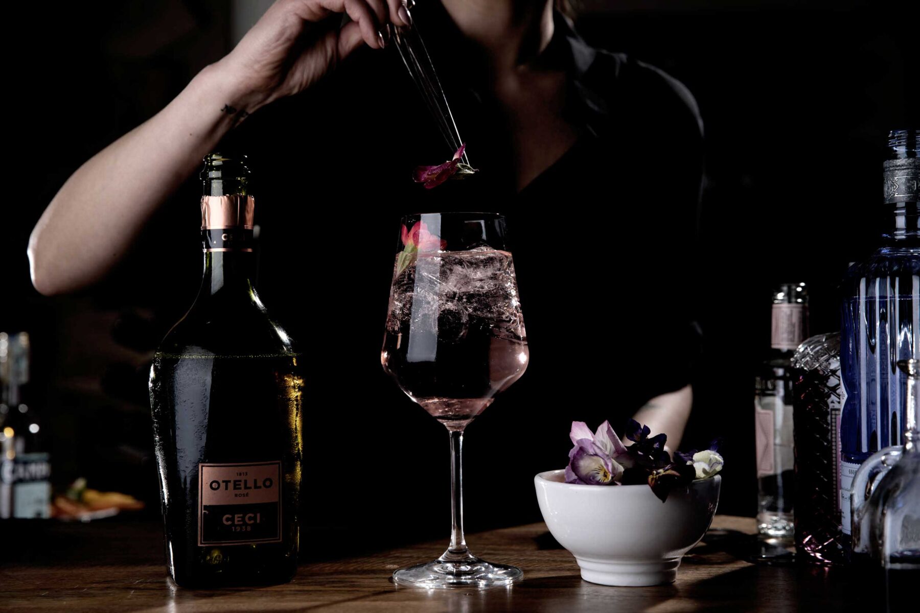 L’Otello Ceci Rosé Spumante, è al centro di tre cocktail che traggono ispirazione da alcuni dei long drink più amati a livello internazionale. Il primo è l’”Otello Ceci G&T”, gin e acqua tonica tra gli ingredienti principali, oltre al vino spumante che conferisce al cocktail un delicato ed intrigante colore rosa.