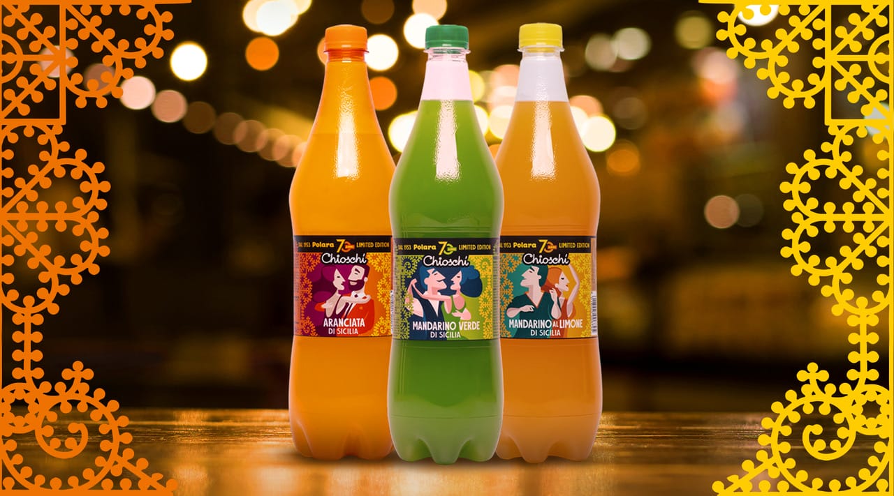 La tavola merita sempre buongusto ed eleganza. Non solo per le feste, ma nella vita di tutti i giorni. I soft drink hanno anche il compito di stimolare il dovuto buonumore. Ecco perché in occasione dei suoi 70 anni Polara (è nata in Sicilia, a Modica, nel 1953), ha deciso di presentare la Chioschì Luminarie Edition, bottiglie Pet da 0,95 lt con delle etichette d’autore illustrate, in grado di portare glamour, colore e luce alla tavola, anche nei più bui mesi autunnali e invernali.