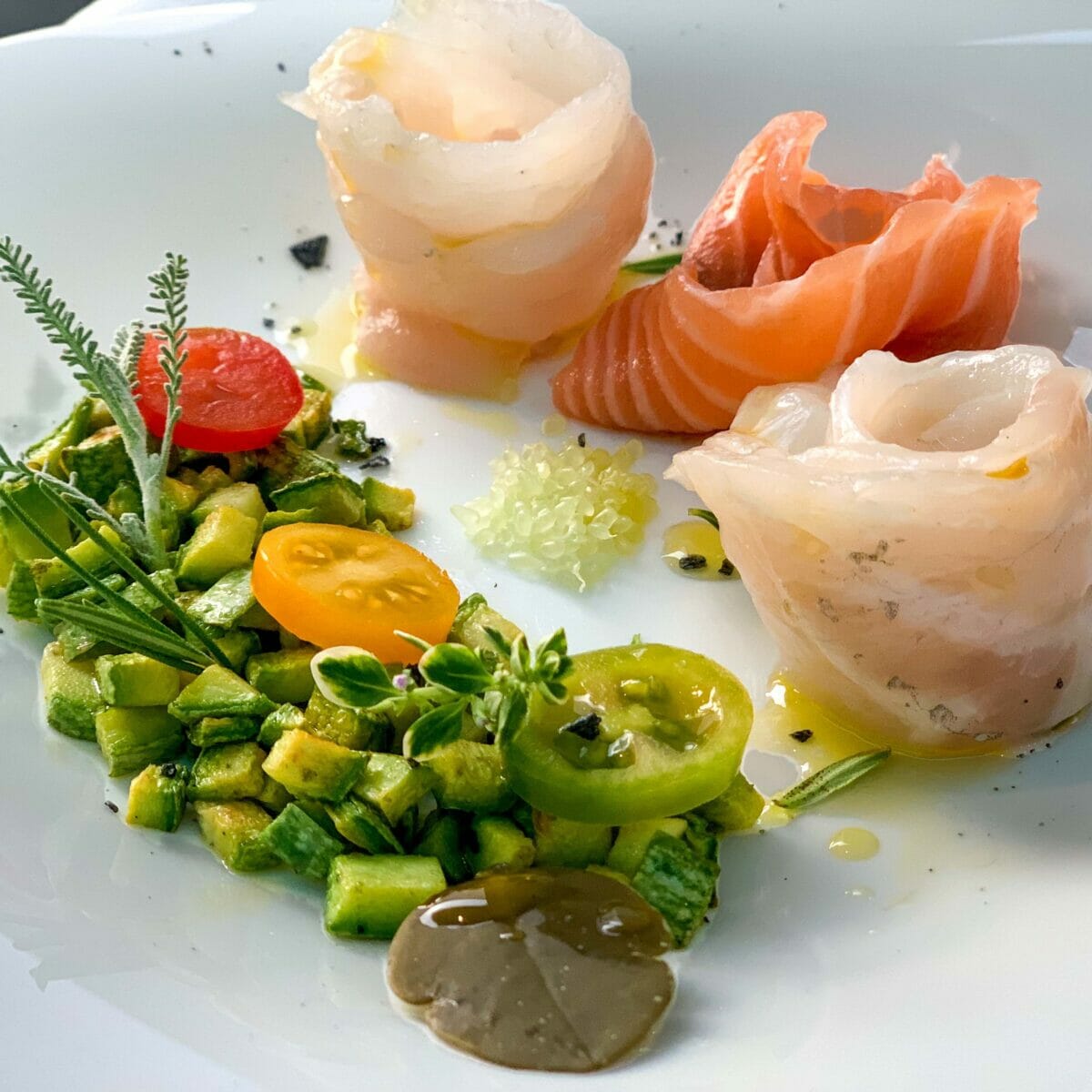 E unica, come detto, è anche la pasticceria. “A differenza di molti altri ristoranti, per i dessert abbiano privilegiato la qualità alla quantità: i dolci in menù non sono molti, ma tutti sono nostre creazioni artigianali, carte in particolare da mia sorella, un vero talento, specializzatasi da anni in questo settore”.