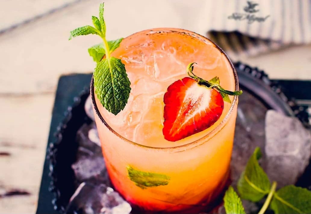 Frullare le fragole con succo di limone e zucchero, pestare leggermente le foglie di menta e aggiungervi il frullato, il rum e l’acqua minerale, quindi versare nel bicchiere con ghiaccio.
