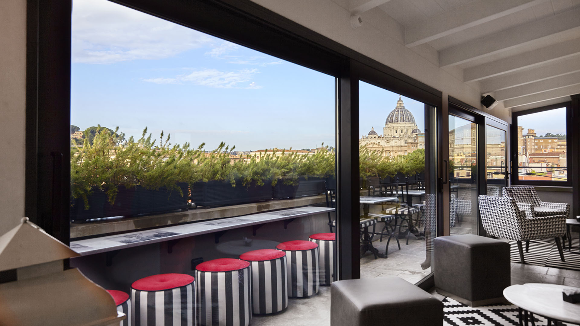 Nel cuore di Roma, a due passi da San Pietro e con lo sguardo che abbraccia Castel Sant’Angelo, nasce Carosello, un cocktail bar che fa rivivere il glamour degli anni ’60 con un tocco di eleganza contemporanea. Situato sulla terrazza panoramica dell’aparthotel Trianon Borgo Pio, struttura storica gestita da quattro generazioni di una famiglia romana, Carosello apre oggi le sue porte al pubblico, diventando una nuova meta d’elezione per chi desidera un aperitivo scenografico e suggestivo.