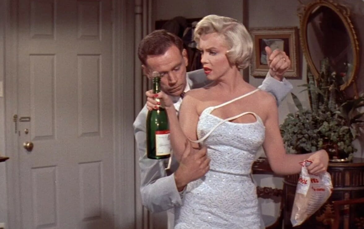 Tra l’altro, non si tratta dell’unica scena “alcolica” che coinvolge Marilyn Monroe in questa pellicola: in un’altra, divenuta essa stessa di culto, la ragazza anziché Martini beve champagne accompagnandolo con le patatine comprate al supermercato.