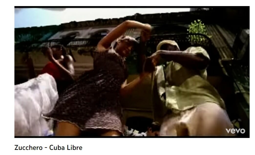 Mi piace la bologna E poi mi piaci tu Un po’ di marijuana Sotto il cielo blu Mi piace la notte all’Havana E poi mi piaci tu Ma sogno un Cuba Libre, mio amor Un altro Cuba Libre, mio amor Che cerco un po’ d’amore, mio amor Sotto il cielo blu