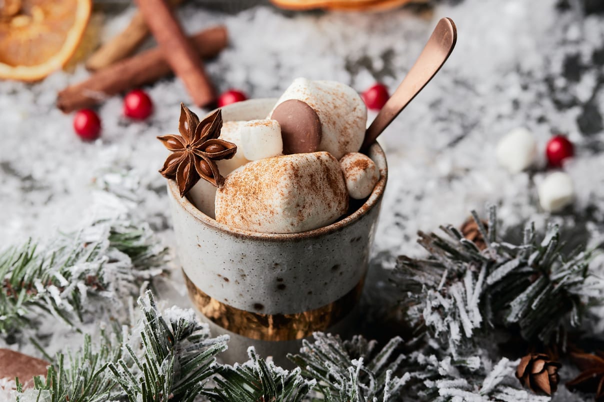 guarnizione: panna montata, polvere di cioccolato, marshmallow