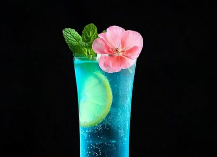 Tecnica: Build Bicchiere: Tumbler alto (o Hurricane) Ingredienti: 15 ml gin 15 ml rum bianco 15 ml tequila 15 ml vodka 15 ml blue curaçao top di Soda (o di Sprite) Garnish: Spicchio di limone, foglie di menta, fiore commestibile