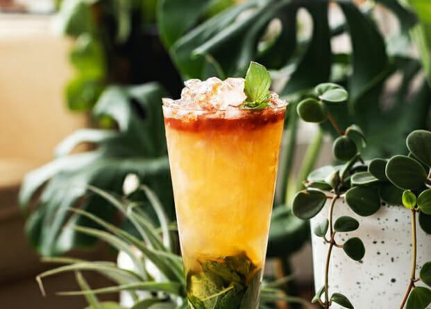 Dolce e fresco, il Giant Pools è un drink Tiki con note di cioccolato, ananas e menta.