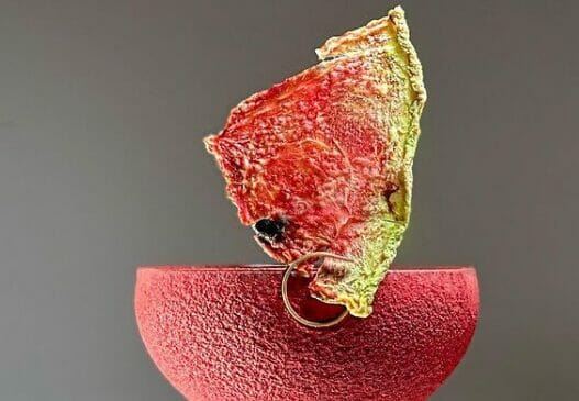 Al centro della ricetta del Watermelon Voyage ci sono Ramazzotti Aperitivo Rosato e Rind Snacks