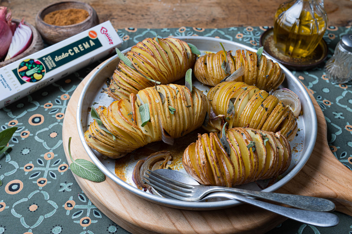 Le patate hasselback sono un piatto tipico della cucina tradizionale svedese, e devono il loro nome ad un ristorante di Stoccolma di nome Hasselbacken, che per primo inventò questa golosa variante “a fisarmonica” delle classiche patate al forno. La foodblogger Alice Parretta del blog Il Dolce di Alice, ce ne propone una versione spicy realizzata con paprika e tutta la cremosità di dado-CREMA Bauer gusto Vegetale, il primo dado da cucina in crema.