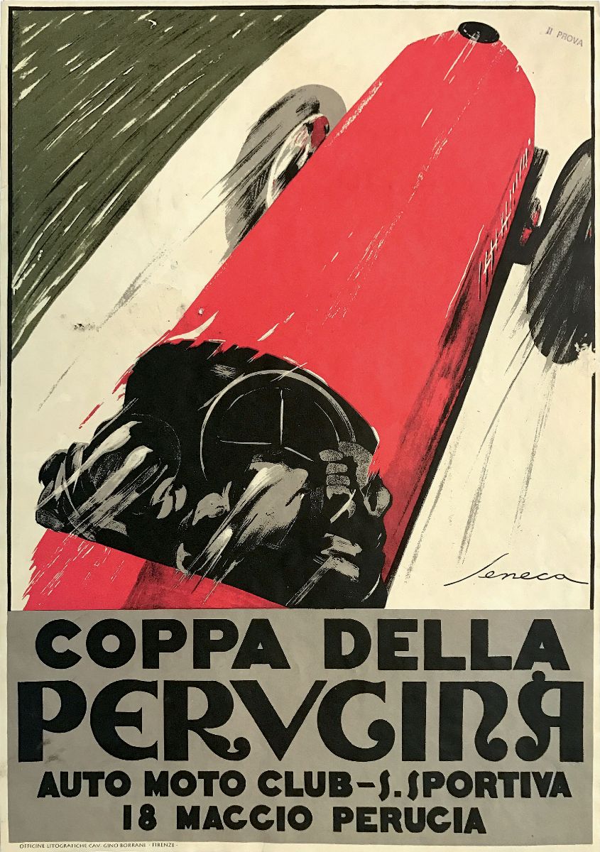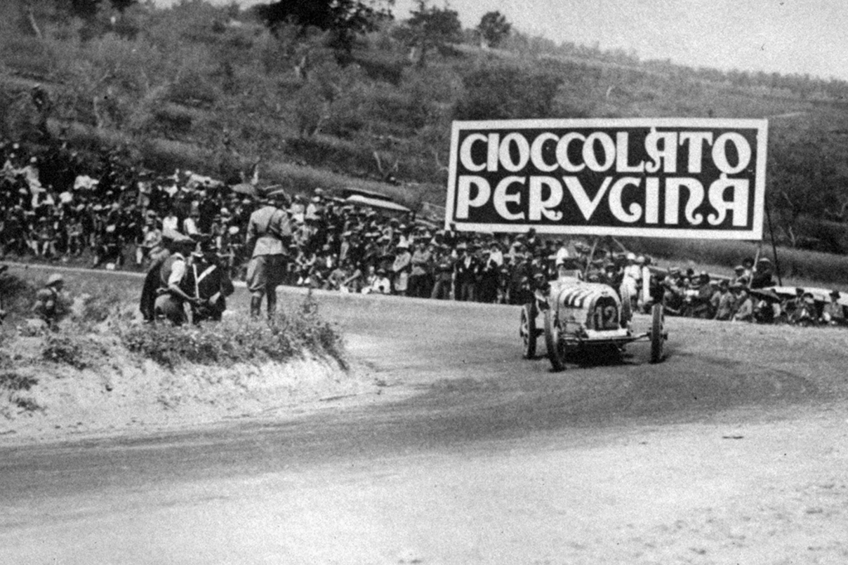 Frutto della lungimiranza manageriale di Giovanni Buitoni, giovane rampollo della famiglia proprietaria della S.A. La Perugina che ha conferito il nome dell’azienda alla storica corsa, la Coppa della Perugina si è collocata in un momento storico in cui la velocità non solo ha rappresentato un cambiamento, ma ha anche ispirato l’arte. Tuttavia, l’innovazione maggiore è stata quella di abbinare, in un connubio perfetto, un evento sportivo ad un marchio commerciale, anticipando così le moderne sponsorizzazioni.