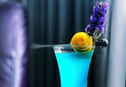 Tecnica: Shake and Strain Ingredienti: 30 ml gin 30 ml succo di limone 30 ml Lillet Blanc 30 ml Blu Curaçao Qualche goccia di assenzio Decorazione: Zest di limone con fiori edili