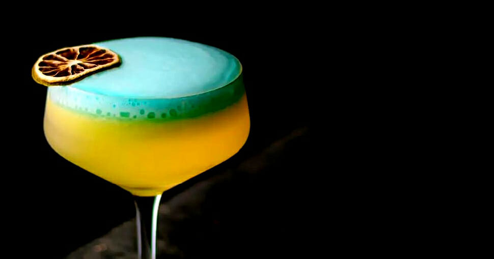 Tecnica: Shake&Strain Ingredienti: 2 oz Zhumir Canuto 1 oz succo di lime fresco ¾ oz di sciroppo di ananas 2 dash di Lime Bitters di Scrappy Garnish: velluto di schiuma di champagne blu