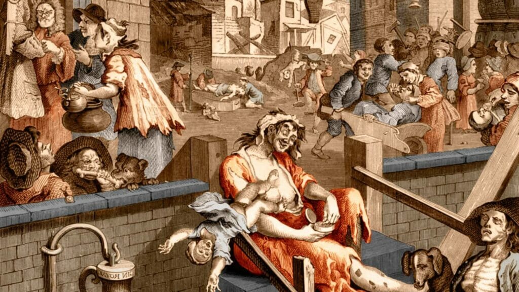 “The Gin Lane”, gli effetti della “gin craze” illustrati da William Hogarth nel 1751