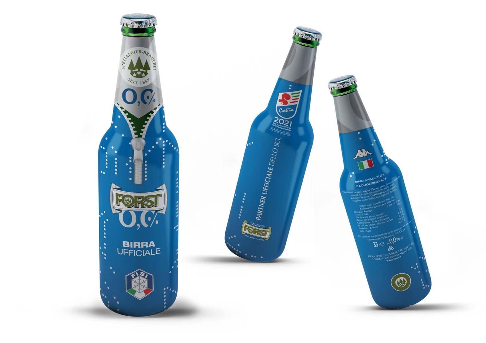In occasione dei Campionati del mondo di sci alpino Birra FORST ha realizzato una limited edition della sua FORST 0,0%