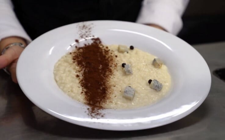 Sullo stesso tema si sono esercitati altri bartender come Mirko Martusciello e Davide Tecchiato del Tumbler Speakeasy di Saronno e Gaetano Balbi del Mastro Ciliegia di Novara. Ma i tre intraprendenti soci di Alfa Spirits sono andati oltre: convinti del fatto che la particolarità del loro gin lo renda particolarmente adatto anche in cucina, hanno coinvolto uno dei più noti chef del territorio, Gianpiero Cravero dell’Osteria Contemporanea di Caltignaga (a pochi chilomdetri da Novara). Che – fra l’altro – con la sous chef Greta Monti ha utilizzato Lucius Dry Gin e crème de cacao (accanto proprio al Gorgonzola) in un risotto gourmet.