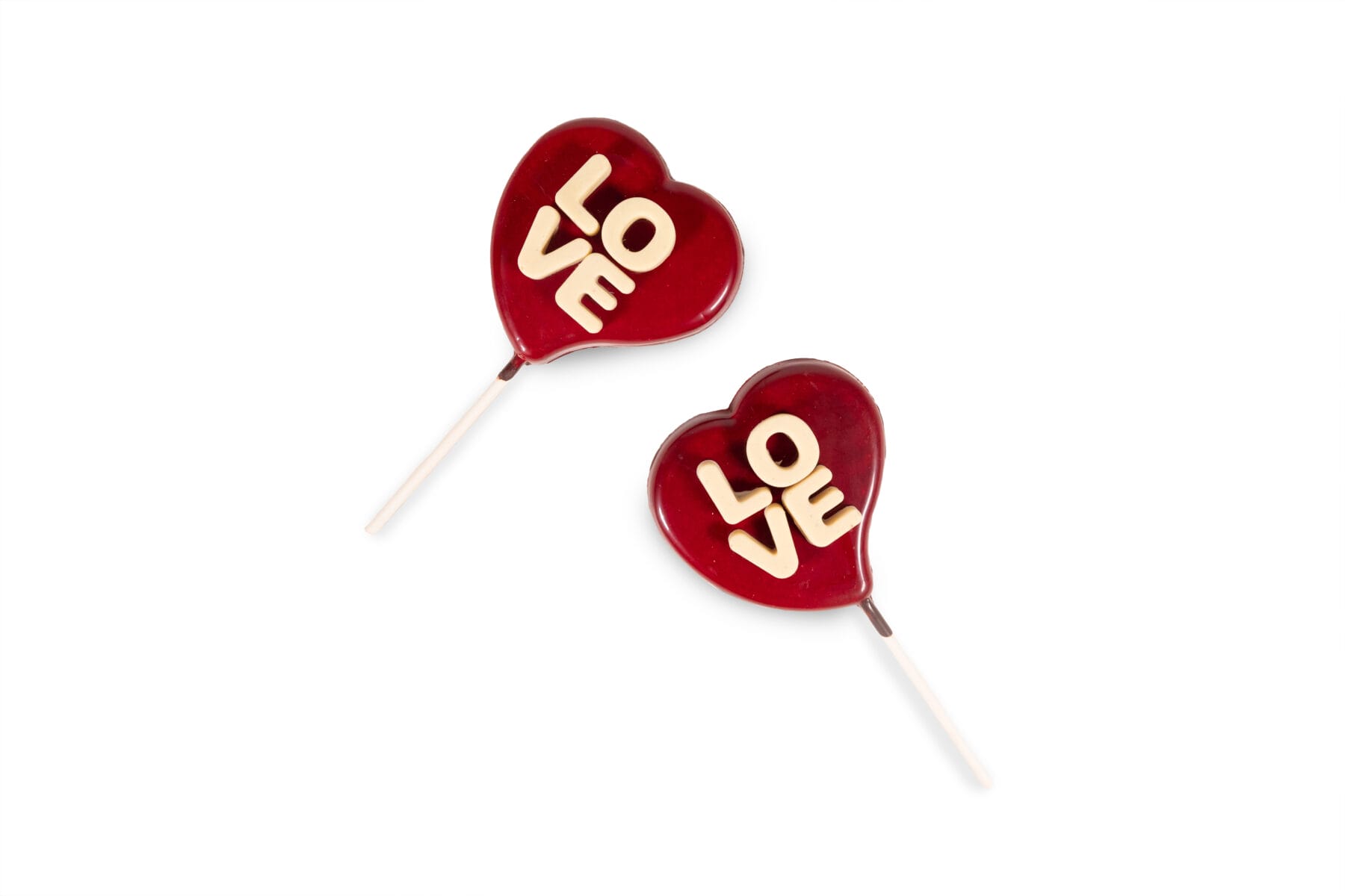 Completano la linea San Valentino 2024 del maitre chocolatier gli ironici lecca-lecca Love e le Lollipop Special Edition in cioccolato bianco farcito con cremino alla nocciola.