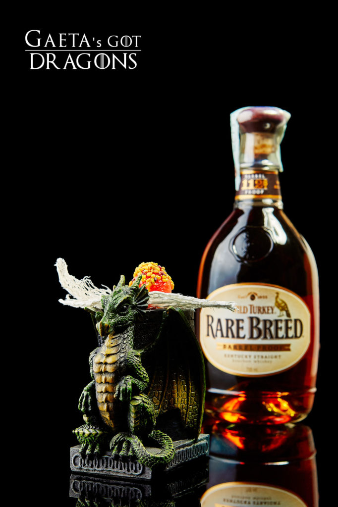 “Gaeta’s Got Dragons è un fantasy cocktail, un omaggio ad una delle serie televisive più seguite degli ultimi anni. – spiega Fabio – Un fuori menù unico e suggestivo creato in occasione delle riprese, che interesseranno la città di Gaeta, di Bloodmoon il prequel de il Trono di Spade. In uno degli scenari più suggestivi, la Grotta del Turco, fervono i preparativi che hanno come colonna sonora le onde del mare. Io nel mio piccolo non potevo non sentirmi coinvolto, anche perché, lo ammetto, il Trono di Spade è stata la mia droga degli ultimi tempi…Come non omaggiare la regina Daenerys e i suoi tre figli dal respiro di fuoco Drogon, Viserion e Rhaegal, simbolo del potere e della conquista.