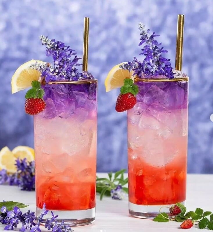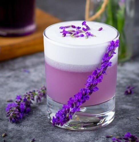 ecco un’altra ricetta con Gin e sciroppo alla lavanda, con succo di lime e liquore alla violetta. A firmarla sono Franzi & Alex , inventori della pagina instagram drink.loving.couple