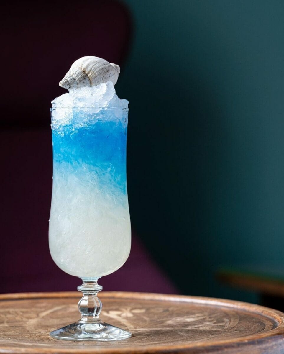 Questo Gin Tonic blu chiamato Salacia, vistoso e d’impatto, è a base del nuovo gin Neptunia di Hendrick’s e del liquore Hierbas de las Dunas, distribuito in Italia da Spirits e Colori. Si tratta di un liquore creato da Syrco Bakker a partire da diciotto tipi di erbe, fiori e piante provenienti dalle dune di Cadzand.