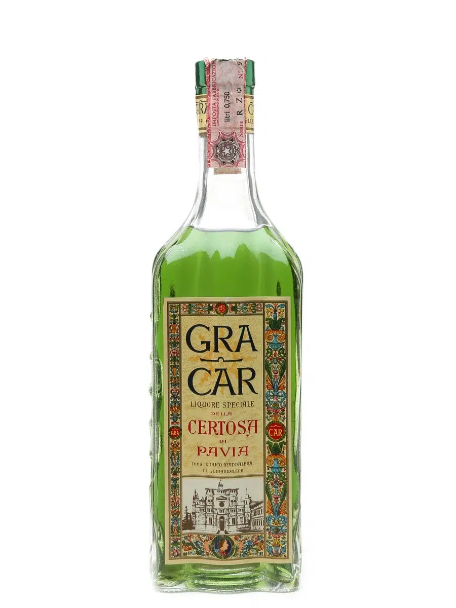 E pensare che, fino a una poco più di una decina di anni fa, in Lombardia veniva prodotto un liquore che, stando alla leggenda, era uno stretto parente proprio della Chartreuse: si chiamava Gra-Car, acronimo di Gratiarum Chartusia (Certosa delle Grazie in latino), ed era nato nel 1892 alla Certosa di Pavia. Si narra infatti che in quell’anno un monaco certosino originario di Grenoble sia arrivato dalla Francia al monastero pavese, dove avrebbe rivelato la ricetta della Chartreuse (elaborata nel 1764 sulla base di un elisir preparato dai monaci sin dal 1605) a Ignazio Giraud, un ex garibaldino ed ex console dell’Uruguay ritiratosi proprio nella certosa, che iniziò quindi a produrre la sua versione del liquore, oltre ad alcuni profumi, insieme con il genero Enrico Maddalena, in alcuni locali concessi dai monaci.