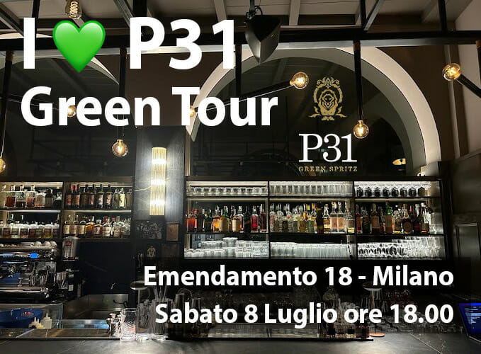 P31 Aperitivo green continua il suo tour nel Nord Italia, dopo le tappe di Parma si passa a Milano al cocktail bar “Emendamento 18“.