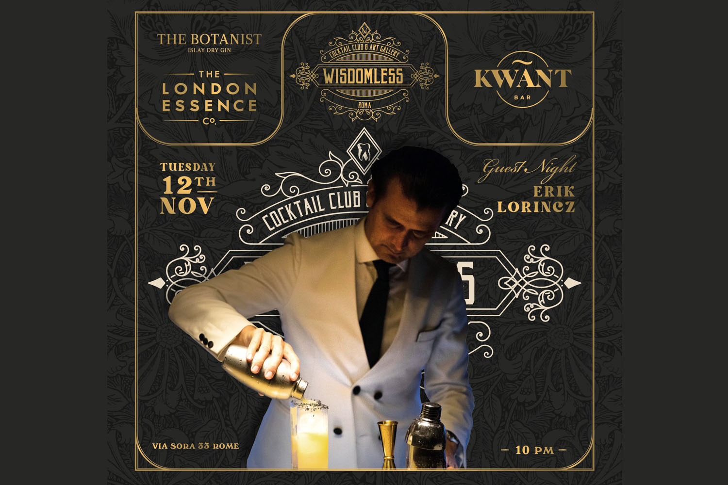 L’evento, aperto al pubblico, si terrà nel cuore di Roma al Wisdomless Cocktail club e sarà incentrato sulla presenza del celebre bartender Erik Lorincz.
