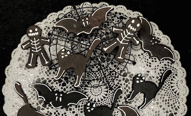 - Biscotti glassati al cioccolato bianco: per un effetto “scheletro” su base scura.